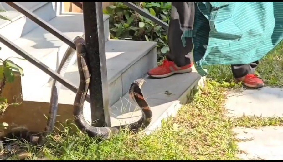 रामनगर एक रिसॉर्ट में किंग कोबरा दिखाई देने से हड़कंप मच गया। किंग कोबरा को रेस्क्यू करने के बाद लोगों ने राहत की सांस ली।
