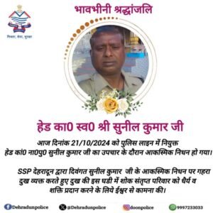 आज दिनांक 21/10/2024 को पुलिस लाइन में नियुक्त हेड कांस्टेबल 398 ना0पु0 सुनील कुमार जी का उपचार के दौरान आकस्मिक...