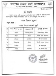 बीजेपी ने 6 नगर निगम के प्रत्याशी घोषित किए
