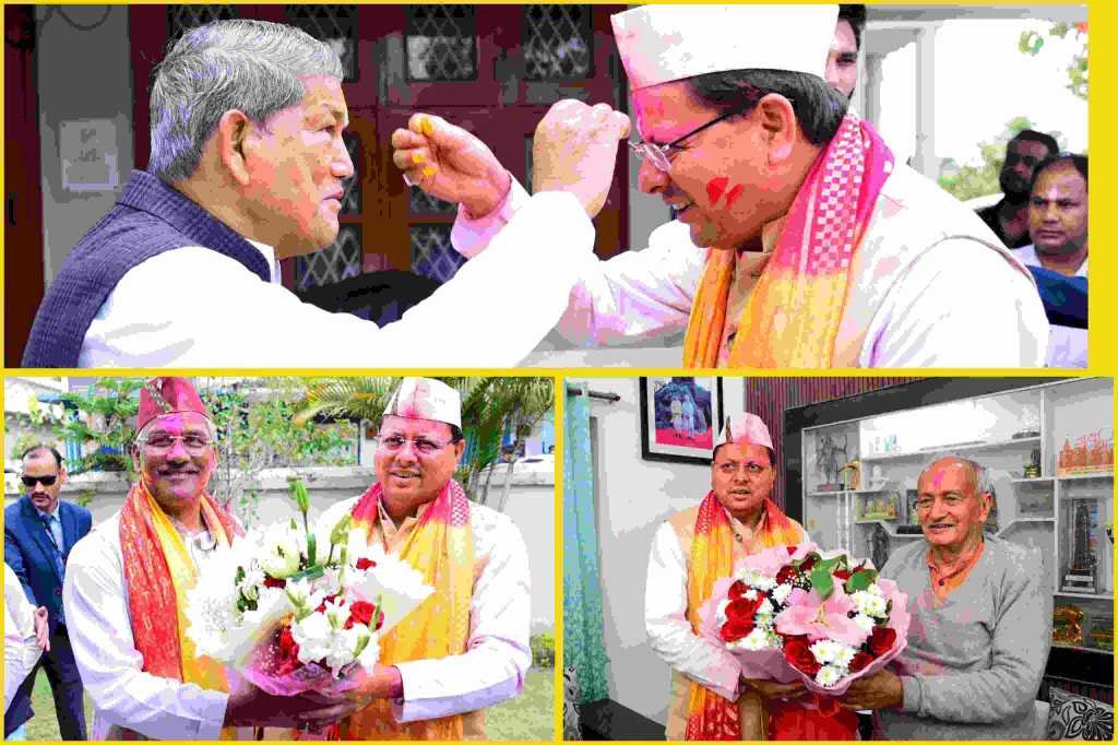 मुख्यमंत्री पुष्कर सिंह धामी ने गुरुवार को पूर्व मुख्यमंत्री श्री हरीश रावत से देहरादून स्थित उनके आवास में मुलाकात कर होली की शुभकामनाएं दीं।