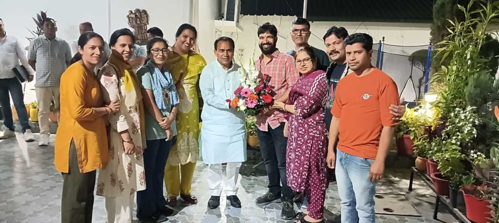 देहरादून: कल सांय संविदा एवं बेरोजगार नर्सिंग अधिकारी महासंघ का प्रतिनिधिमंडल अपने पूर्व अध्यक्ष हरिकृष्ण बिजल्वाण जी के नेतृत्व में माननीय स्वास्थ्य मंत्री डॉ धन सिंह रावत जी को उनके शासकीय आवास यमुना कॉलोनी पर मिला संगठन की प्रदेश अध्यक्ष मीनाक्षी मंमगाई द्वारा बताया गया कि 27 तारीख को होने वाले नियुक्ति पत्र वितरण कार्यक्रम के लिए माननीय मंत्री जी का सभी नर्सिंग बेरोजगारों की ओर से धन्यवाद प्रेषित किया गया