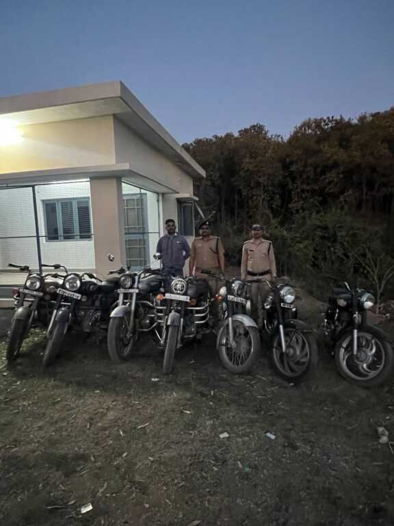 वरिष्ठ पुलिस अधीक्षक देहरादून द्वारा सभी थाना प्रभारियों को अपने अपने थाना क्षेत्रो में यातायात नियमों का उल्लंघन करने वाले वाहन चालकों के विरुद्ध प्रभावी कार्रवाई करने के निर्देश दिए गए हैं। उक्त निर्देशों के क्रम में थाना प्रेमनगर पुलिस द्वारा आज दिनांक 30/03/25 को व्यापक स्तर पर चेकिंग अभियान चलाते हुए यातायात नियमो का उल्लंघन कर मॉडिफाइड साइलेंसर लगी 08 रॉयल इनफील्ड बुलेट मोटरसाइकिल को सीज किया गया। उक्त सभी मोटरसाइकिलो में वाहन चालकों द्वारा मॉडिफाइड साइलेंसर का प्रयोग किया जा रहा था तथा वाहन चलाते समय पटाखो की आवाज निकालने की क्षेत्रवासियों द्वारा लगातार शिक़ायत की जा रही थीं।