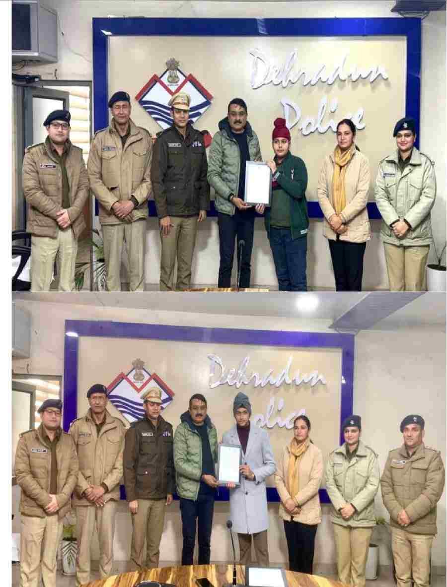 उक्त घटना का संज्ञान लेते हुए वरिष्ठ पुलिस अधीक्षक देहरादून द्वारा आज दिनांक: 14-01-26 को पुलिस कार्यालय में आयोजित कार्यक्रम में दोनो बहादुर बच्चो को सम्मानित किया गया। इस दौरान वरिष्ठ पुलिस अधीक्षक देहरादून द्वारा दोनो बच्चों को प्रशस्ति पत्र प्रदान करते हुए उनका उत्साहवर्धन किया तथा भविष्य में भी इसी प्रकार लोगों को सहायता के लिये आगे आने हेतु प्रेरित किया गया।