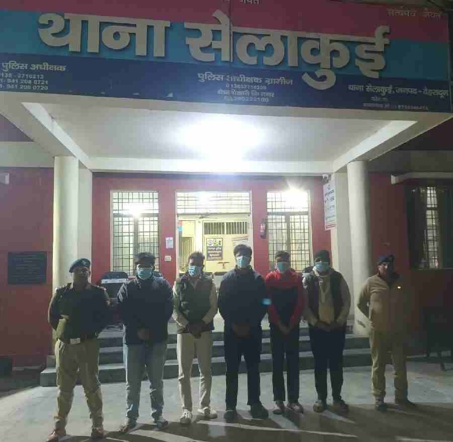 घटना के संबंध में एसएसपी देहरादून द्वारा दिये गए निर्देशों पर सेलाकुई पुलिस द्वारा त्वरित कार्रवाई कर घटना में शामिल अभियुक्तों के संबंध में जानकारी प्राप्त करते हुए 05 अभियुक्तों को गिरफ्तार किया गया। उक्त सभी अभियुक्त एक निजी शिक्षण संस्थान के छात्र हैं, जिनके विरुद्ध कार्यवाही हेतु संस्थान से भी पत्राचार किया गया है।