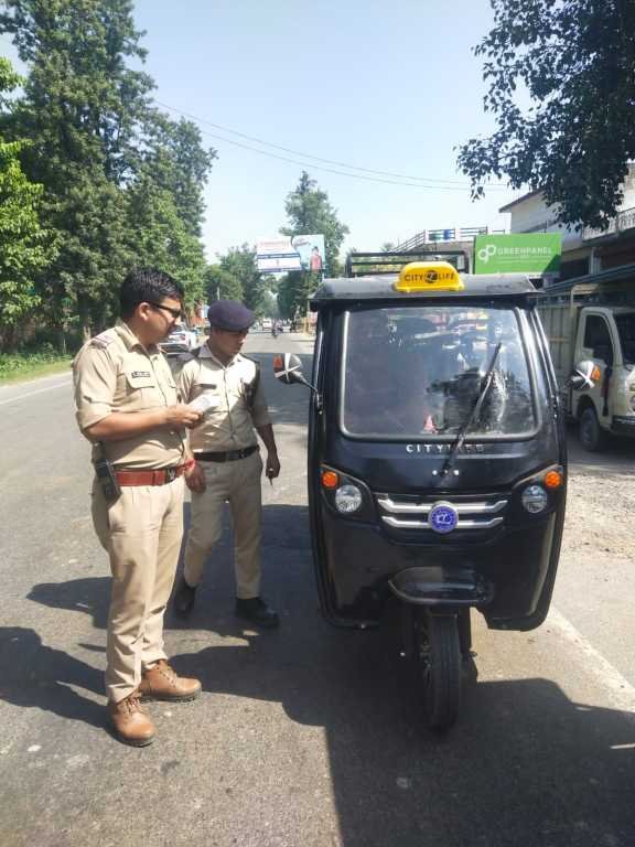 वरिष्ठ पुलिस अधीक्षक देहरादून को सेलाकुई विकासनगर हाइवे में ई -रिक्शा चालको द्वारा नियम विरुद्ध तरीके से ई -रिक्शाओ के संचालन तथा उससे यातयात व्यवस्था बाधित होने की शिकायतें प्राप्त हुई थी, जिस पर एसएसपी देहरादून द्वारा पुलिस अधीक्षक यातायात को यातायात नियमों के उल्लंघन करने वाले ई-रिक्शा एवं वाहन चालकों के विरुद्ध प्रभावी कार्रवाई करने हेतु विकासनगर/सेलाकुई हाईवे पर चेकिंग अभियान चलाते हुए यातायात नियमों का उल्लंघन करने /नो पार्किंग में खड़े वाहनों के विरुद्ध कार्रवाई करने के निर्देश दिए गए थे। निर्देशों के अनुपालन में आज दिनांक 10/10/2024 को यातायात पुलिस द्वारा स्थानीय पुलिस के साथ मिलकर विकास नगर सेलाकुई हाइवे में चेकिंग अभियान चलाया गया। चेकिंग अभियान के दौरान यातायात नियमों का उल्लंघन करने वाले वाहन चालकों के विरुद्ध कार्रवाई करते हुए कुल 120 वाहनों के चालान किए गए, जिसमें 22 ई रिक्शा वाहनों को सीज किया गया , 97 चालान एम0वी0 एक्ट की धाराओं में किए गए तथा 6500/- रुपए सयोजन शुल्क वसूला गया। उक्त कार्रवाई के दौरान ई-रिक्शा चालकों को हाईवे पर न चलने की हिदायत दी गई साथ ही यातायात नियमों के प्रति जागरूक किया गया तथा दोपहिया वाहन चालकों को हेलमेट पहनने की अनिवार्यता के प्रति भी जागरूक किया गया।