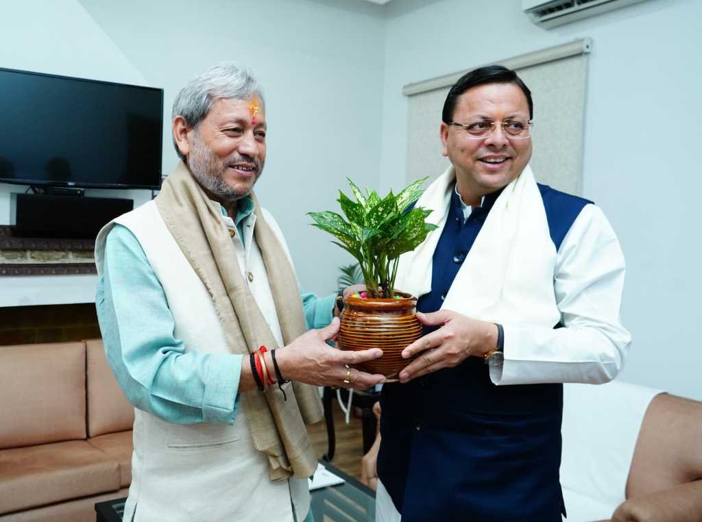 मुख्यमंत्री पुष्कर सिंह धामी से सोमवार को मुख्यमंत्री आवास में पूर्व मुख्यमंत्री श्री तीरथ सिंह रावत ने शिष्टाचार भेंट की। इस दौरान उन्होंने राज्य के विकास से संबंधित विभिन्न विषयों पर विस्तार से चर्चा की।
