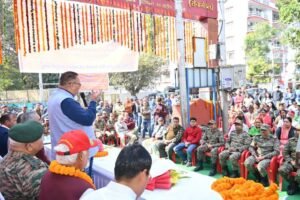 अमर शहीद मेजर भूपेन्द्र कण्डारी (सेना मेडल) के नाम पर नव निर्मित शहीद द्वार का मंत्री गणेश जोशी ने किया लोकार्पण