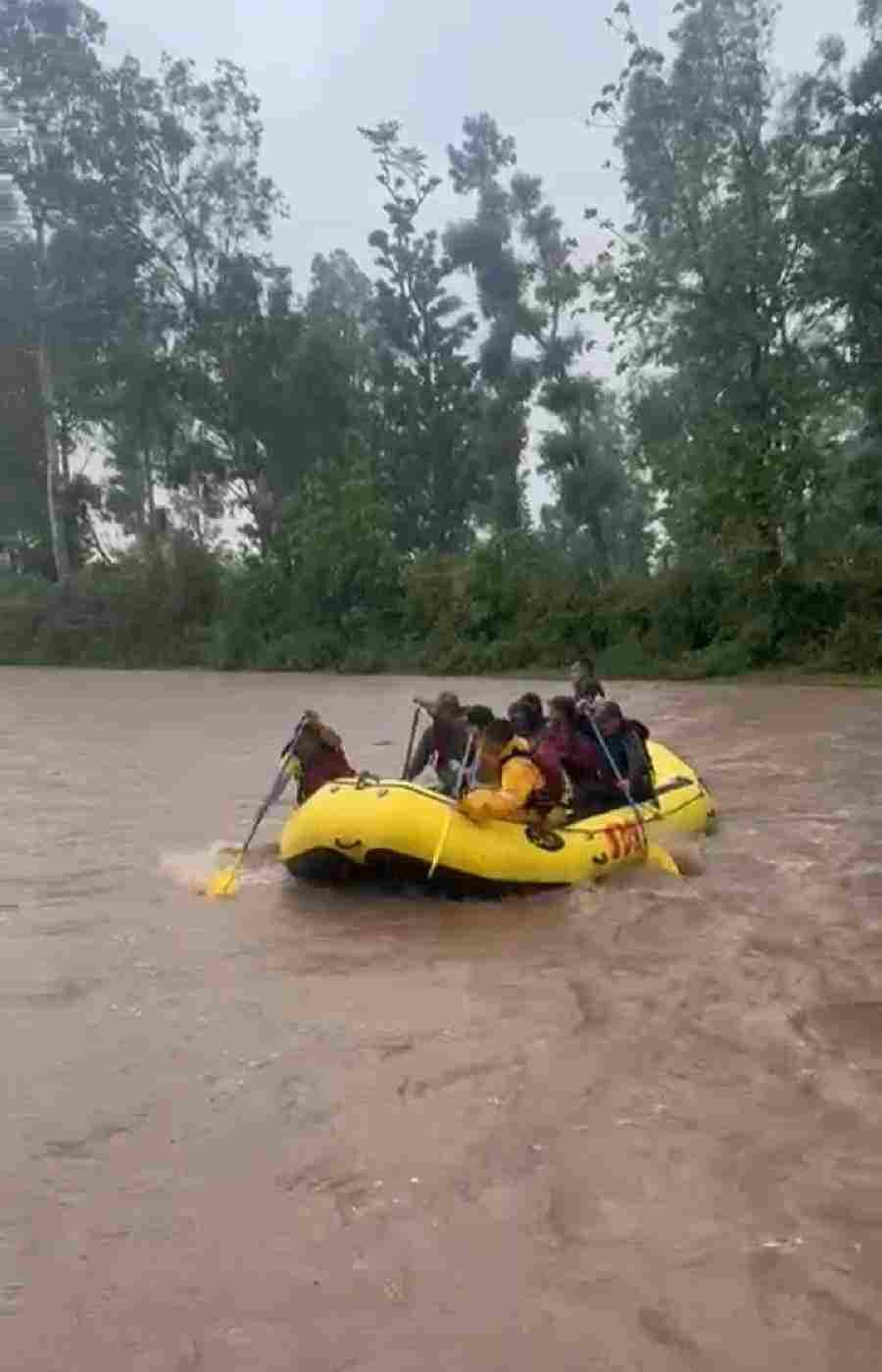 एसडीआरएफ टीम द्वारा घटनास्थल पर पहुंचकर अत्यधिक विषम परिस्थितियों में नदी के तेज बहाव में राफ्ट की सहायता से नदी किनारे फंसे 24 लोगों को नदी से निकालकर सुरक्षित मार्ग पर छोड़ा गया।