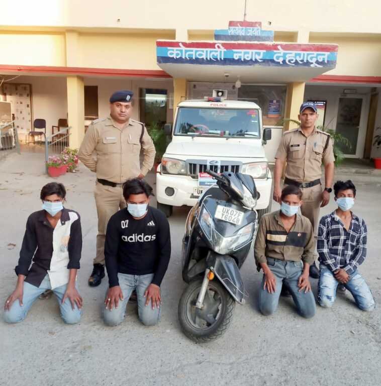 साथ ही उक्त वायरल वीडियो में दिख रही दूसरी स्कूटी वाहन संख्या UK 07 FY 6048 पर सवार 04 युवकों के संबंध में पुलिस द्वारा जानकारियां एकत्रित करते हुए आज दिनांक 13- 04- 2025 को उक्त चारों युवकों (1) साजेब पुत्र साजिद निवासी न्यू पार्क रोड, गांधीग्राम देहरादून (चालक) (2)-सुहैल पुत्र ताहिर निवासी उपरोक्त (3)- जुनैद पुत्र नौशाद निवासी उपरोक्त (4)- जफर पुत्र निवासी उपरोक्त को हिरासत में लिया गया तथा स्कूटी को सीज कर युवकों के विरुद्ध आवश्यक वैधानिक करवाई की गई।