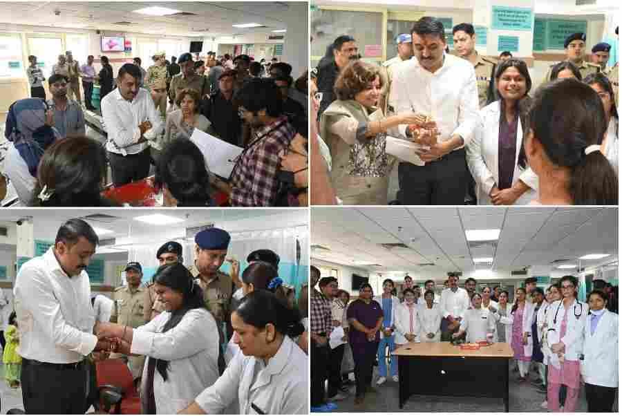 आज दिनांक: 19-08-2024 को वरिष्ठ पुलिस अधीक्षक देहरादून द्वारा कोरेनेशन तथा दून हास्पिटल का भ्रमण कर वंहा की सुरक्षा व्यवस्था का जायजा लिया गया। सुरक्षा व्यवस्था के सम्बन्ध में एसएसपी देहरादून द्वारा अस्पताल प्रबंधन से वार्ता कर सुरक्षा व्यवस्था के सम्बन्ध में जानकारी ली गई। भ्रमण के दौरान कोरेनशन हास्पिटल तथा दून हास्पिटल में ड्यूटी पर नियुक्त महिला डाक्टरों तथा नर्सों द्वारा वरिष्ठ पुलिस अधीक्षक देहरादून तथा उपस्थित पुलिस टीम की कलाई पर रक्षा सूत्र बांधकर मनाया रक्षाबंधन का पर्व। वरिष्ठ पुलिस अधीक्षक देहरादून द्वारा उपस्थित महिला डाक्टरों व अन्य महिला स्टाफ को आश्वस्त किया कि उनकी सुरक्षा देहरादून पुलिस की सर्वोच्च प्रार्थमिकता है, डॉक्टर नर्स को दिलाया भरोसा वर्क प्लेस पर कार्य के दौरान भी सेन्स ऑफ सिक्युरिटी देना हमारी प्राथमिकता है।
