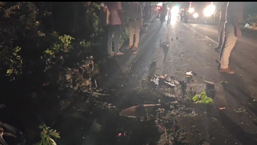 बुधवार को देर शाम आठ बजे के पास कालाढूंगी-हल्द्धानी मोटर मार्ग में वन निगम के पास हल्द्धानी की ओर से आ रही रेसर बाइक सामने जा रही टैक्ट्रर-ट्राली से टकराने के बाद आग लगते हुए हल्द्धानी को जा रहे बाइक सवार से जा टकराई वही चकलुवा से आ रही बाइक सवार भी चपेट में आ गये।जिसके बाद बाइकें आग के गोलों में तब्दील हो गयी। आग लगने सडक में अफरा-तफरी का माहौल हो गया।जिंदा जल रहे लोगों को बचाने के लिए राहगीरों ने प्रयास किये।