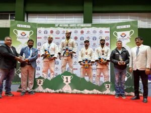 38वें राष्ट्रीय खेल में जूडो प्रतियोगिता के दूसरे दिन कई भार वर्गों में रोमांचक मुकाबले और बेहतरीन प्रदर्शन देखने को मिले
