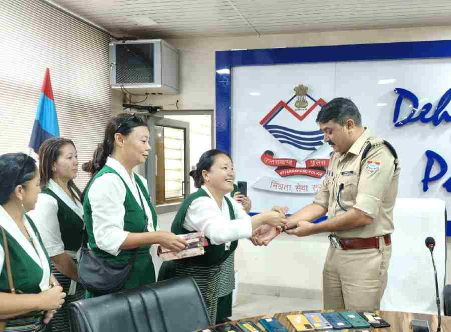 रीजनल तिब्बतन वूमेन एसोसिएशन देहरादून से आयी बहनों द्वारा वरिष्ठ पुलिस अधीक्षक देहरादून से शिष्टाचार भेंट की गयी, भेंट के दौरान संस्थान की अध्यक्ष केन्ली डोलमा के साथ आये तिब्बतन महिला शिष्टमंडल द्वारा वरिष्ठ पुलिस अधीक्षक देहरादून की कलाई पर राखी बांधते हुए उनकी दीर्द्यायु की कामना की गयी। इस दौरान उपस्थित बहनों द्वारा महिला सुरक्षा के प्रति एसएसपी देहरादून द्वारा किये जा रहे प्रयासों की सराहना करते उन्हें धन्यवाद ज्ञापित किया गया।